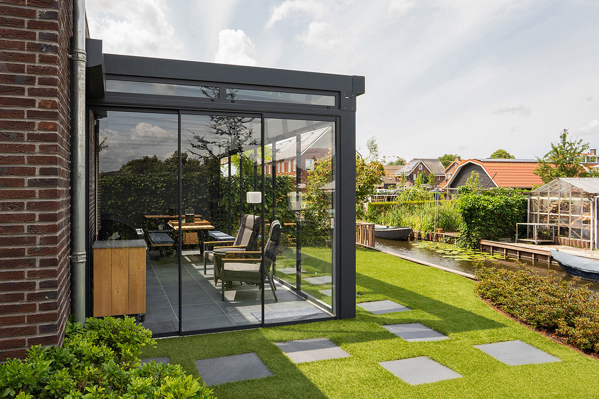 Wohlfühlraum statt Wetterlaune: Schiebe- und Festelemente halten Wind & Regen fern und bewahren den freien Blick – ideal für den Kaltwintergarten.